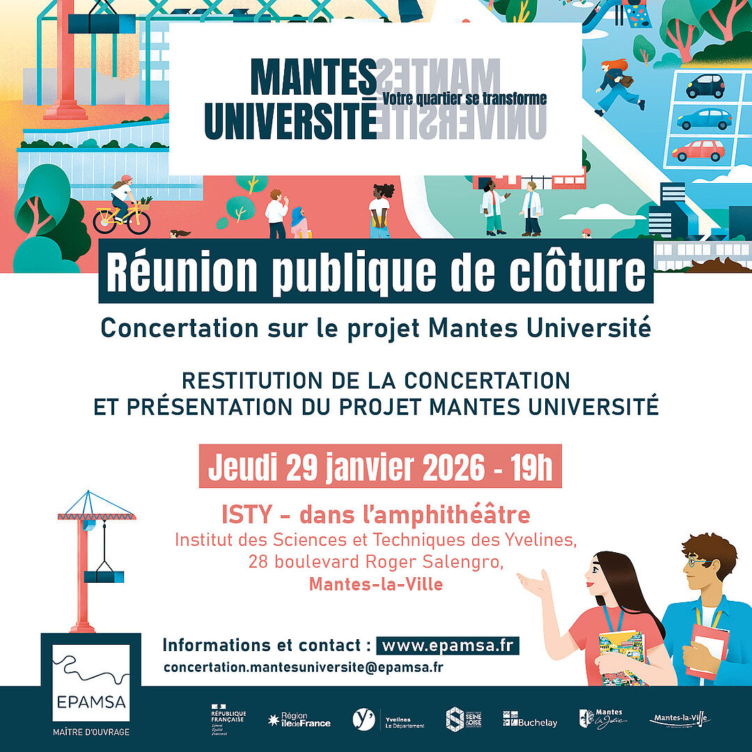 Le jeudi 29 janvier 2026 à 19h, l’EPAMSA organise une réunion de clôture dans l'amphithéâtre de l’ISTY (Institut des Sciences et Techniques des Yvelines, 28 boulevard Roger-Salengro à Mantes-la-Ville).